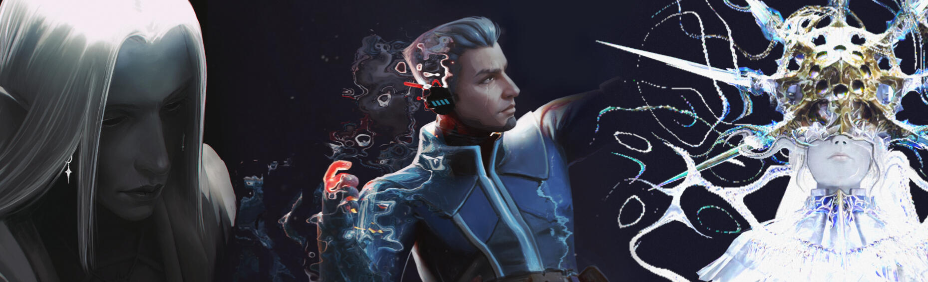 Half body, complex character, colours